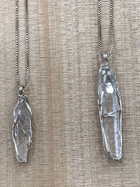 写真左側の水晶ネックレスになります。チェーン部分はメッキ、40cmです。