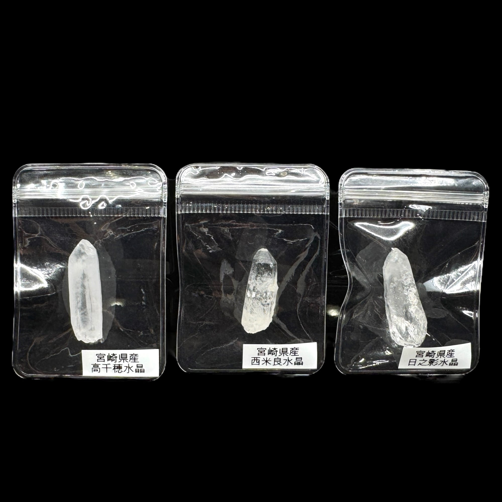 宮崎県内で有名な3大産地の水晶のポイント3本セット販売になります。