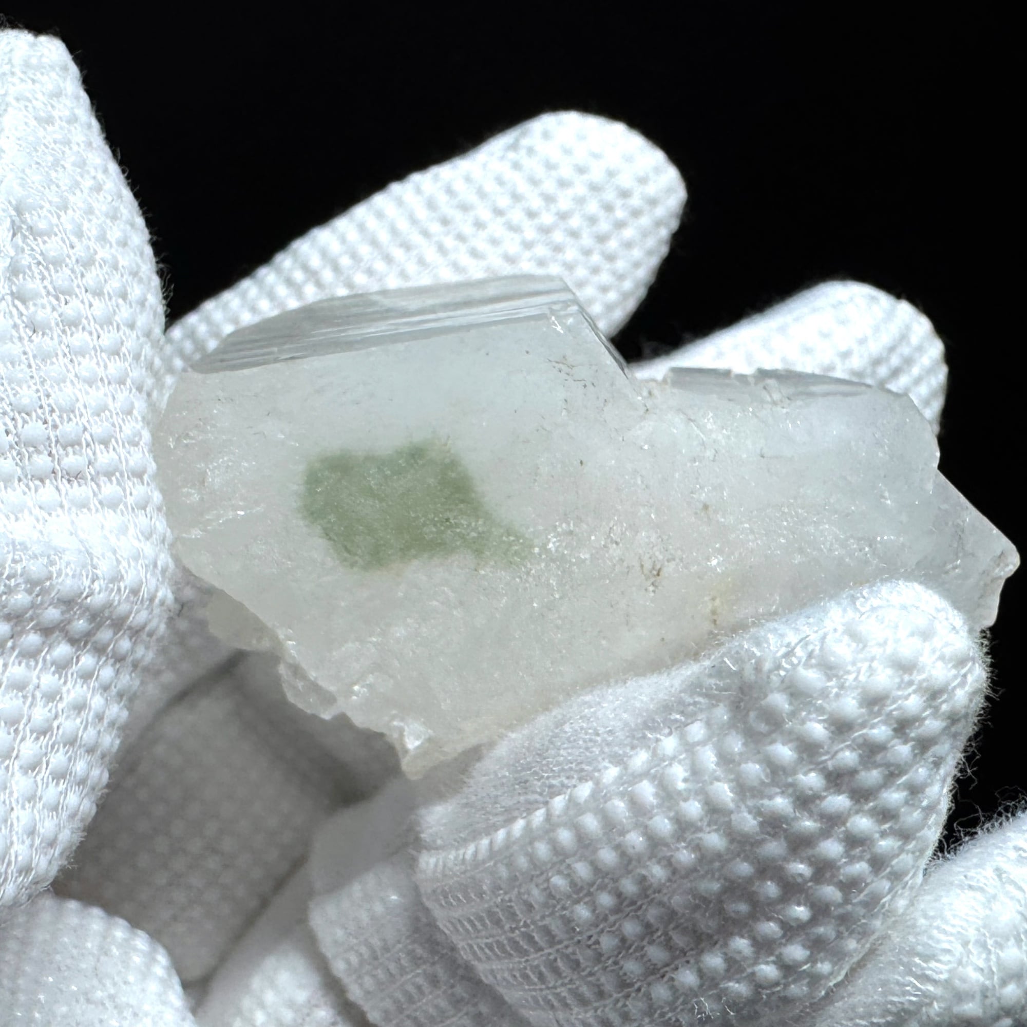 【宮崎・高千穂町産 天然水晶】 下部から中心に苔水晶(緑部分)がみられます。