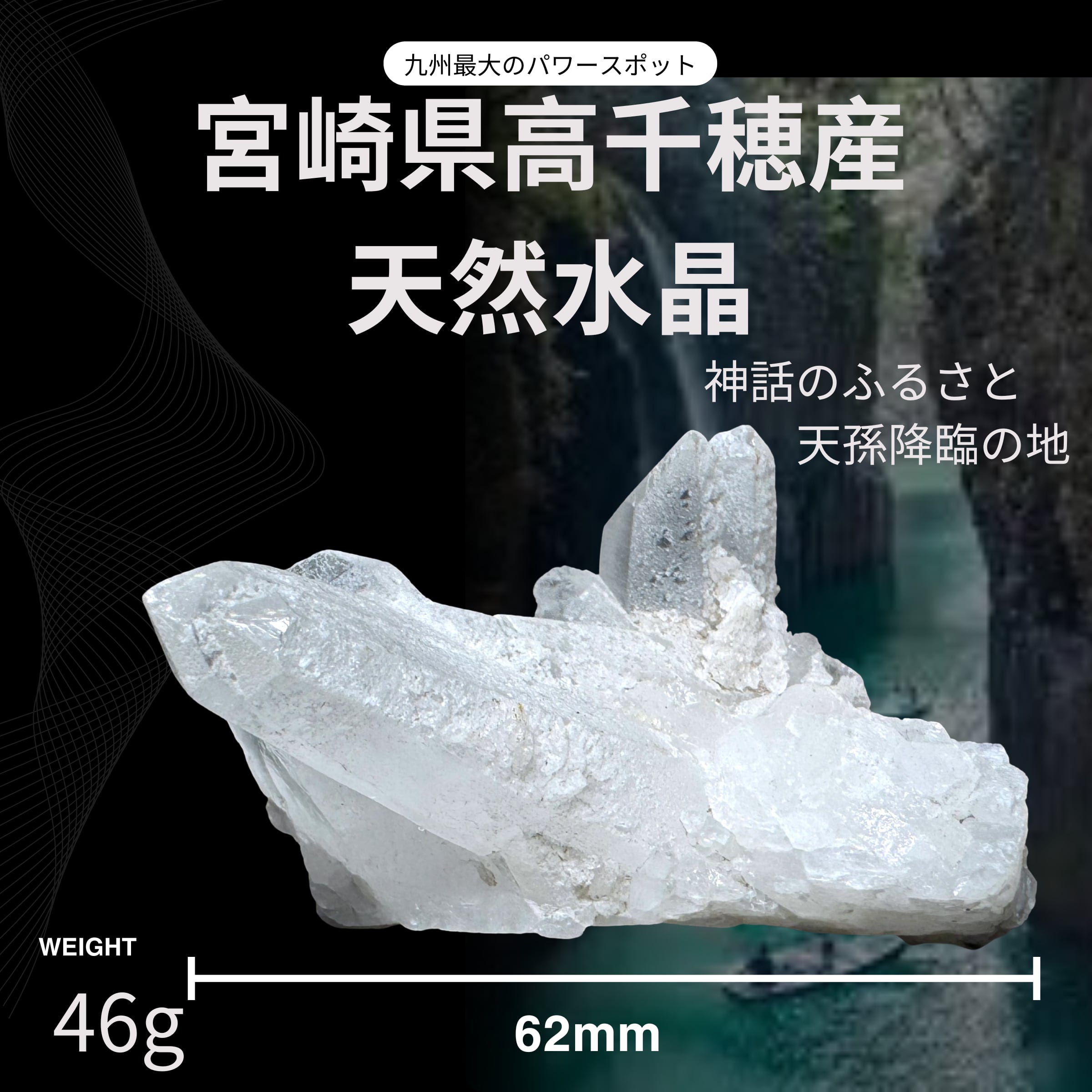 【宮崎・高千穂産】天然水晶クラスター◆幅62mm◆46g◆原産地証明書付き|日本の神聖な地で育まれた一点物|スピリチュアル・浄化・インテリアに