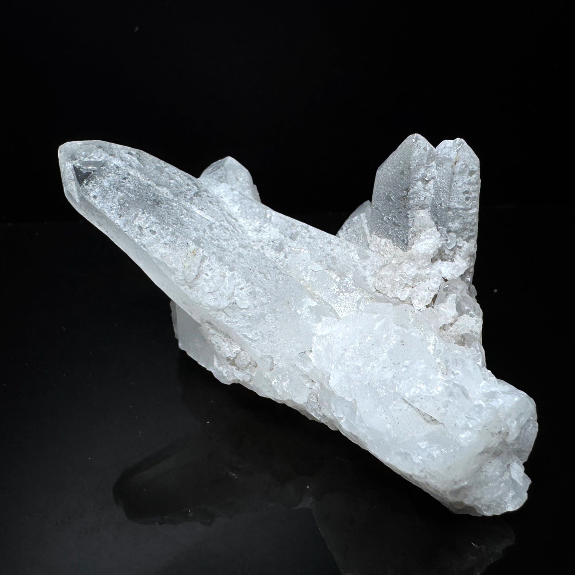 高千穂水晶は、宮崎県高千穂地方で産出される天然水晶です。高千穂水晶は白い内包物(クローライトや雲母など)が含まれるものが多く、自然の美しさが楽しめます。特に白っぽい水晶は「癒し」や「浄化」の象徴とされています。