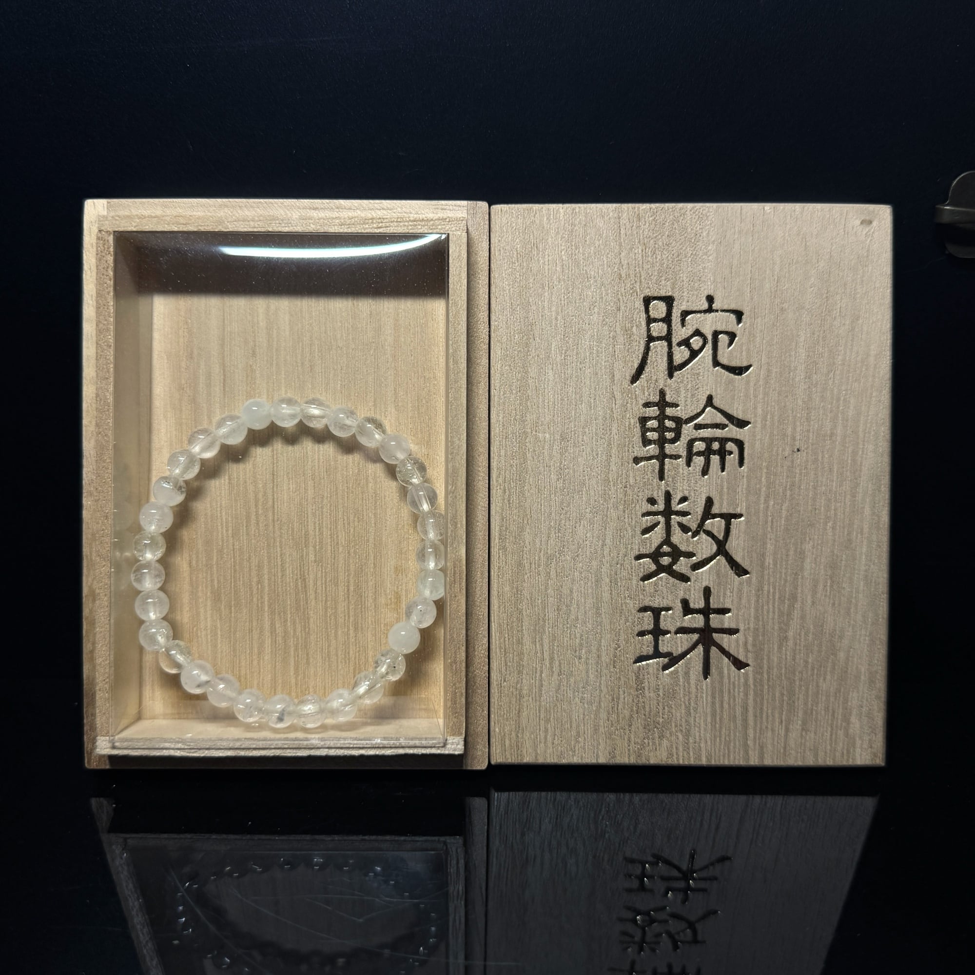 【宮崎県高千穂産】高千穂天照水晶ブレスレット ◇6mm×31珠◇内径約16cm◇白い霞がかった神秘の色◇最高のパワースポットの水晶◇1点物◇原産地証明書・桐箱付き