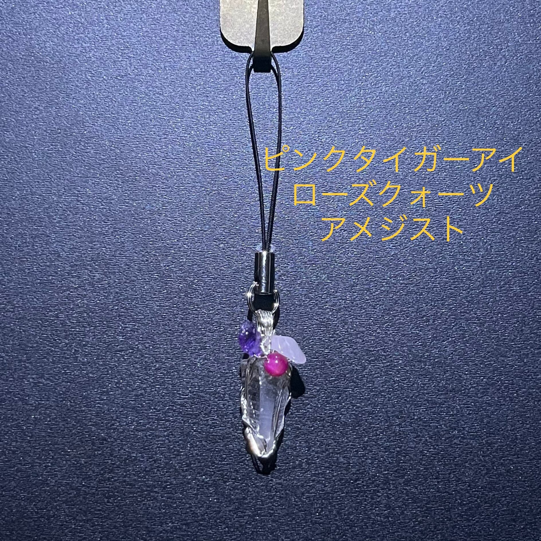 水晶には傷をつけず、弊社にて手作りしたストラップになります。