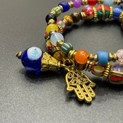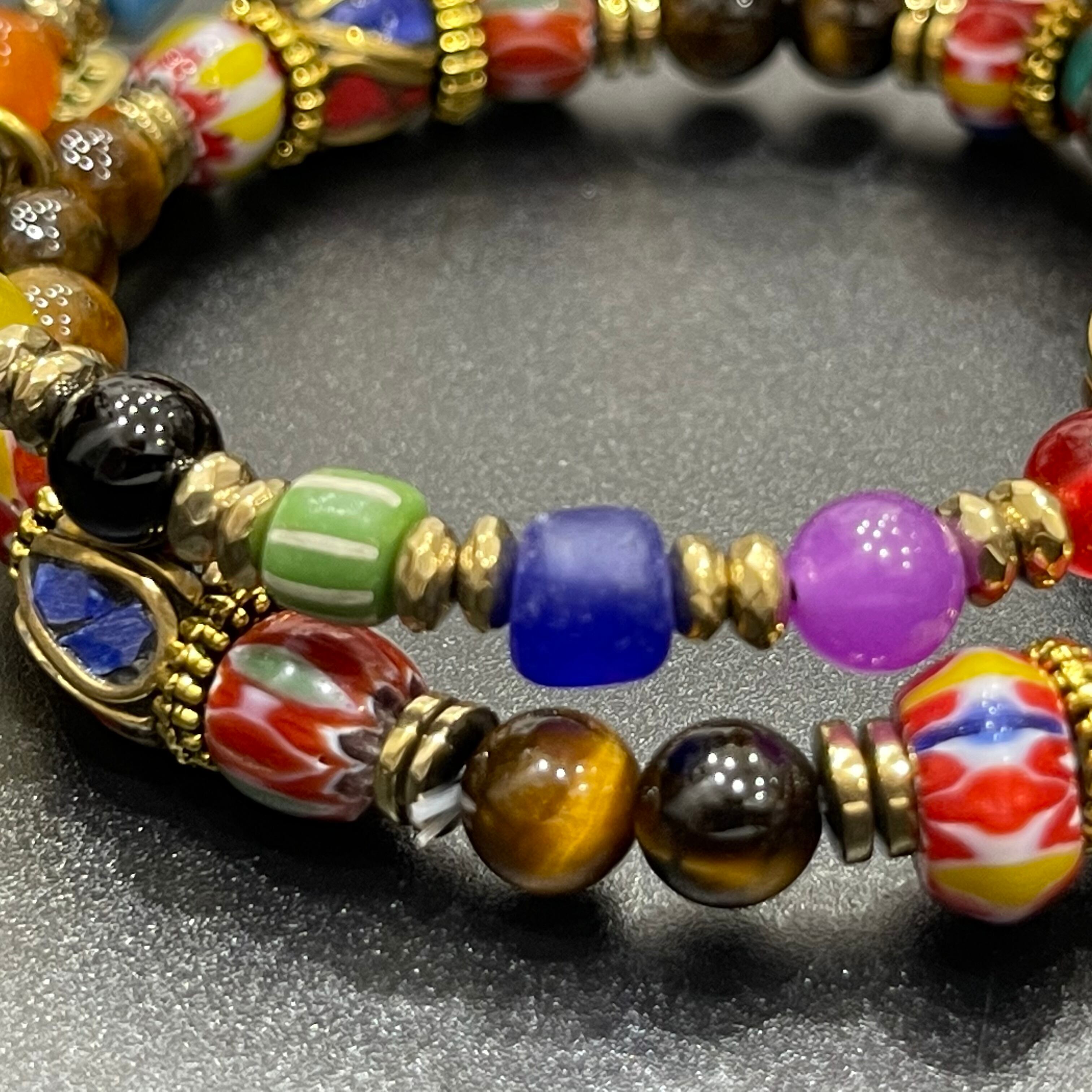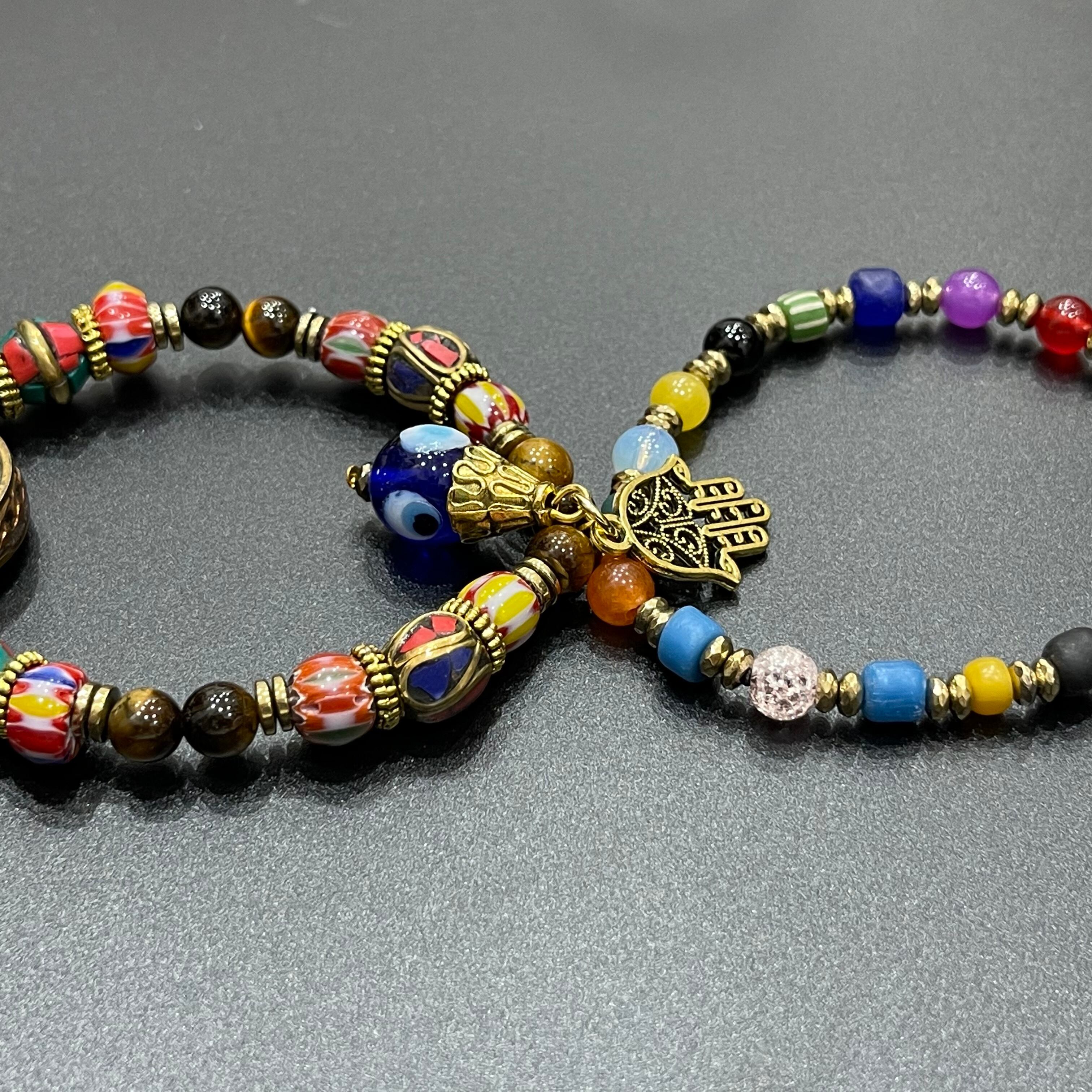 [トルコのお守り]ナザールボンジュウ ネパールアンティークストーンブレスレットⅠ 【ダブル】◇手首サイズ約16㎝