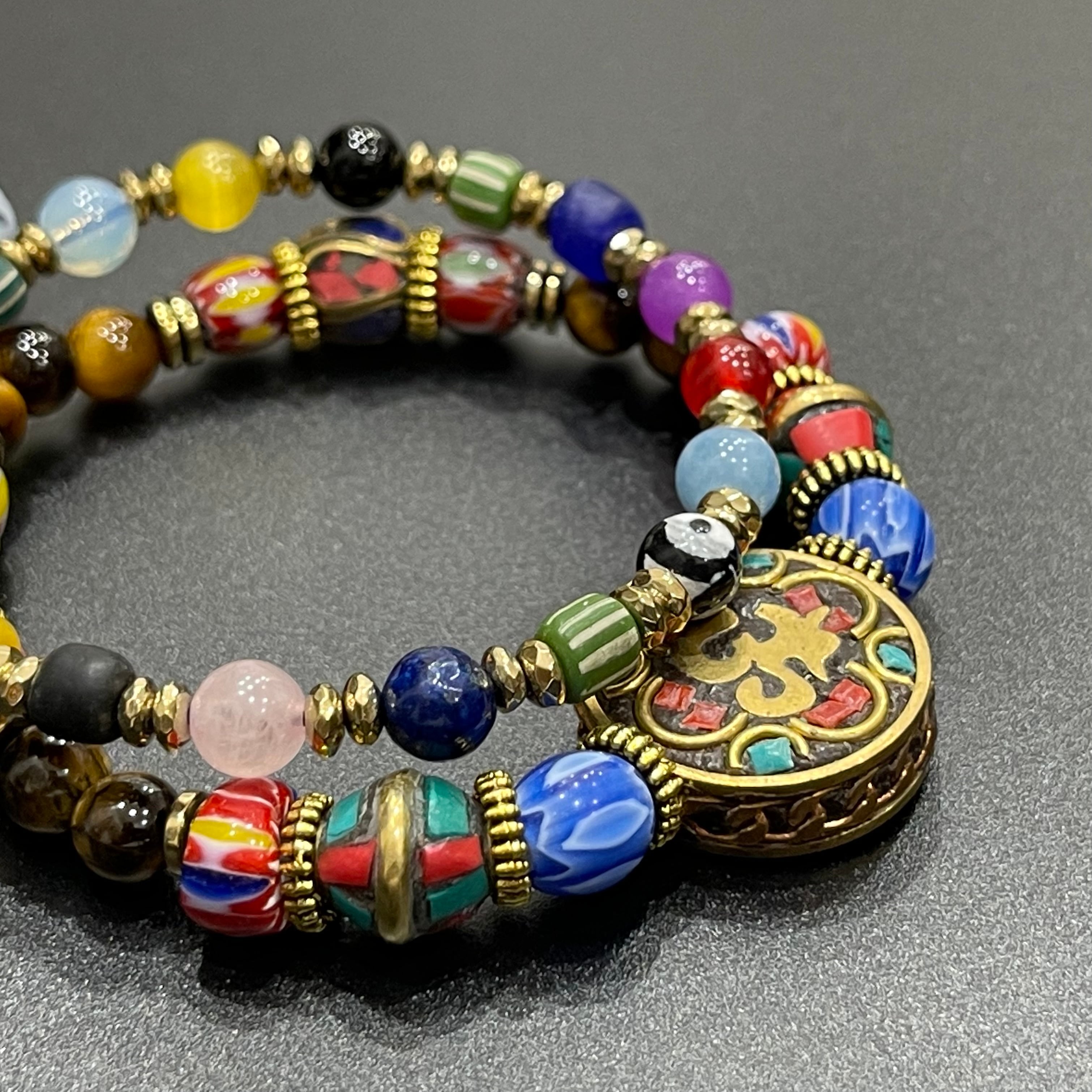 ネパールの天然石を使ったナザールボンジュウのダブルブレス。