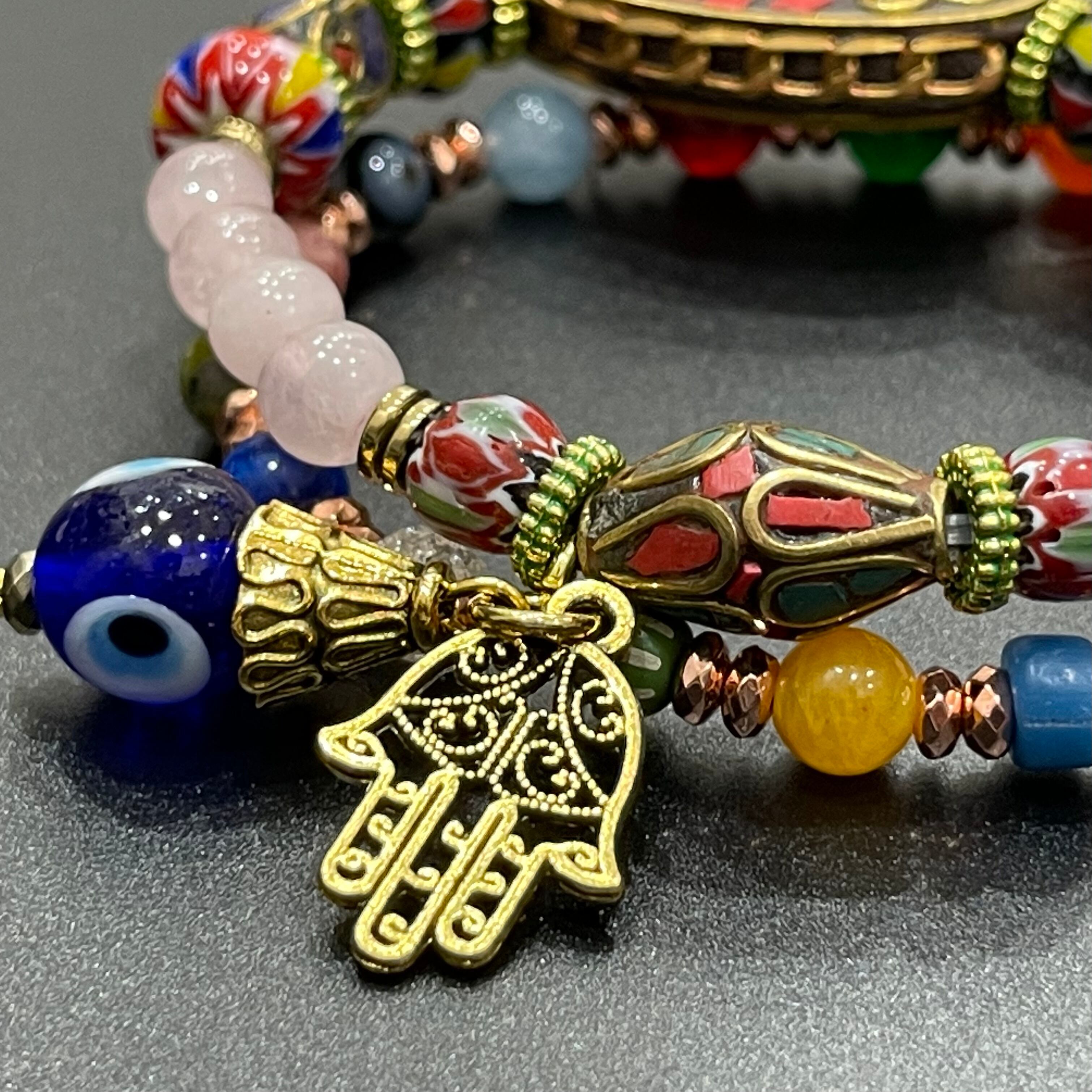 ネパールの天然石を使ったナザールボンジュウのダブルブレス。