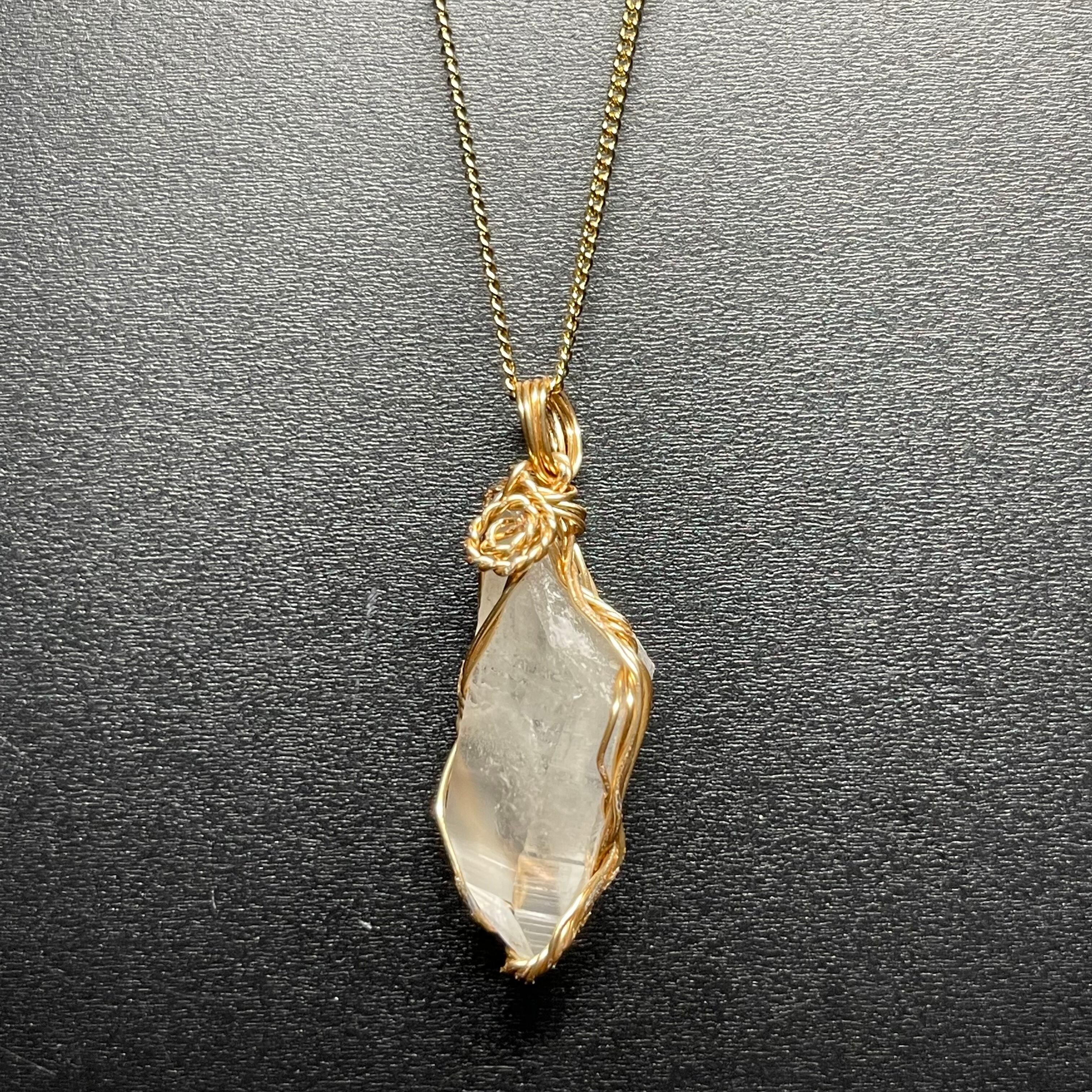 宮崎県高千穂産 高千穂天照水晶ネックレス 水晶サイズ◆縦33mm ◆ チェーン45cm