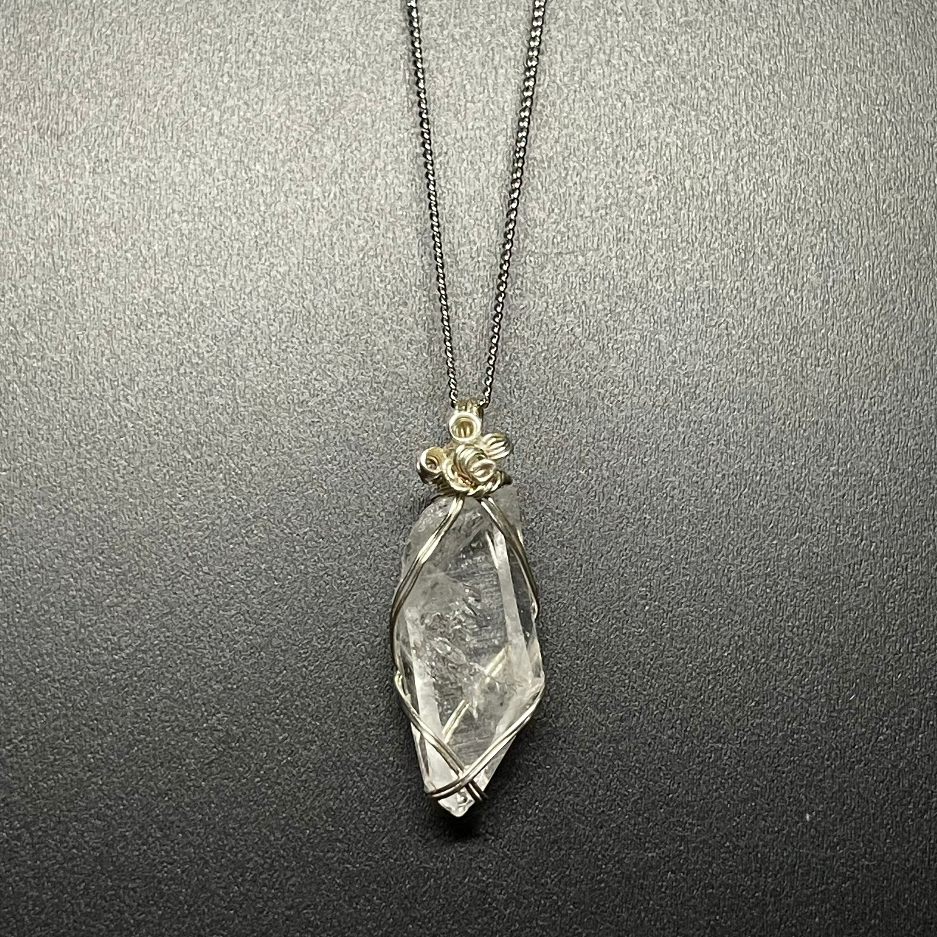 宮崎県西米良産 西米良板谷水晶ネックレス 【虹入り】水晶サイズ◆縦32mm ◆ チェーン45cm