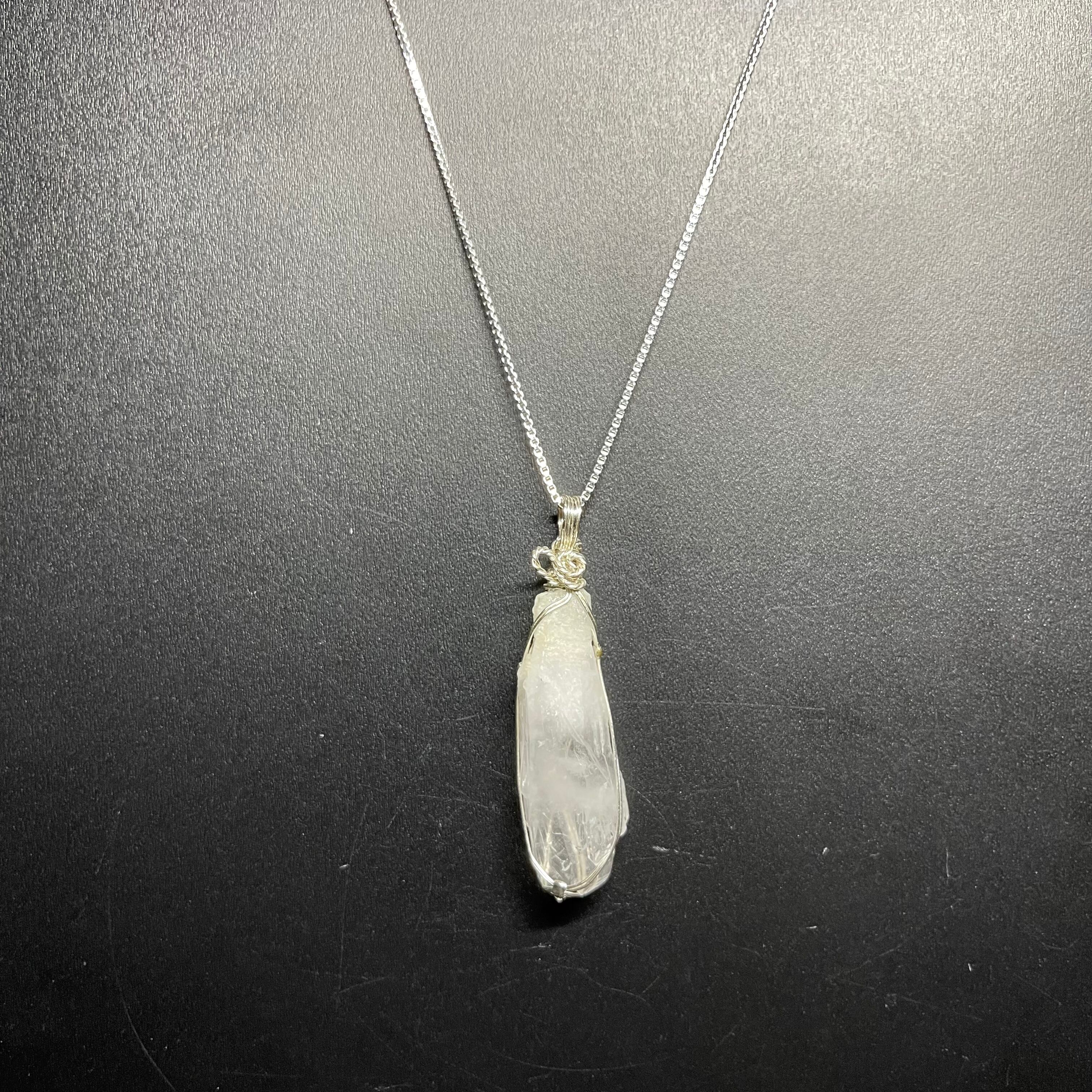 宮崎県高千穂産 【高品質】高千穂天照水晶ネックレス 水晶サイズ◆縦39mm ◆sv925ベネチアン チェーン45cm