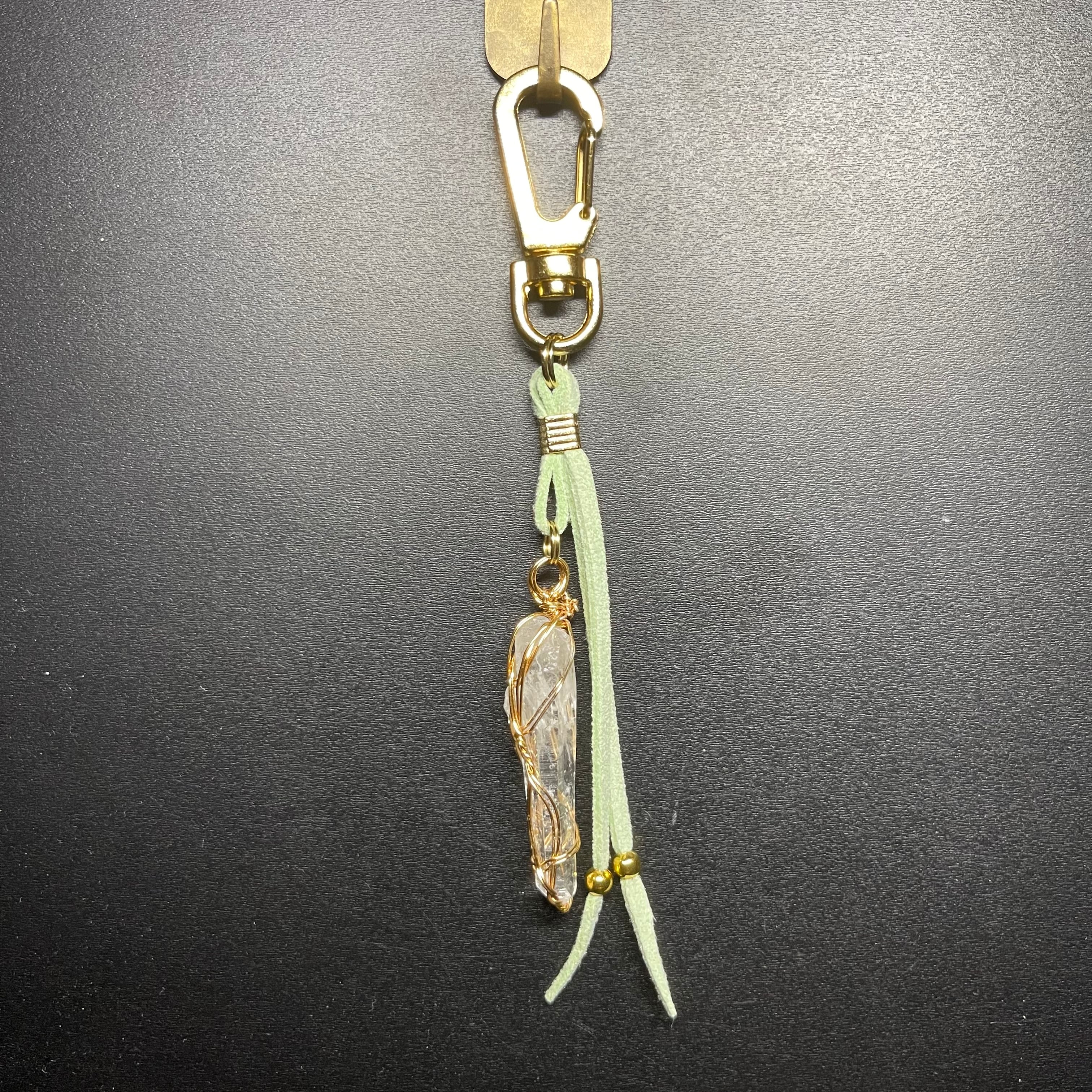 水晶には傷をつけず、弊社にて手作りしたストラップになります。