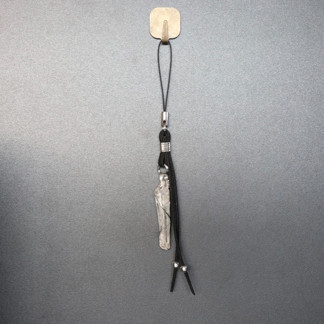 水晶には傷をつけず、弊社にて手作りしたストラップになります。