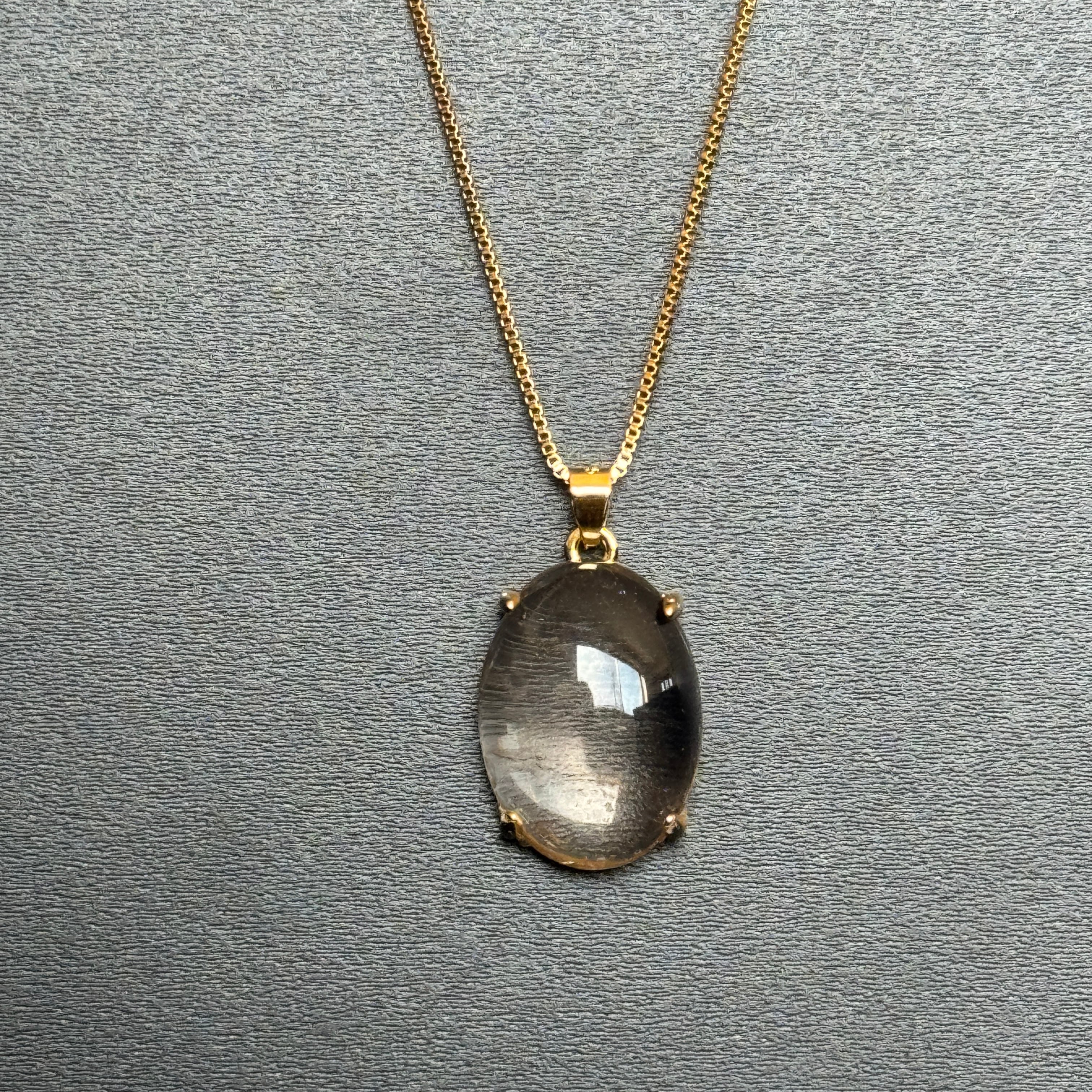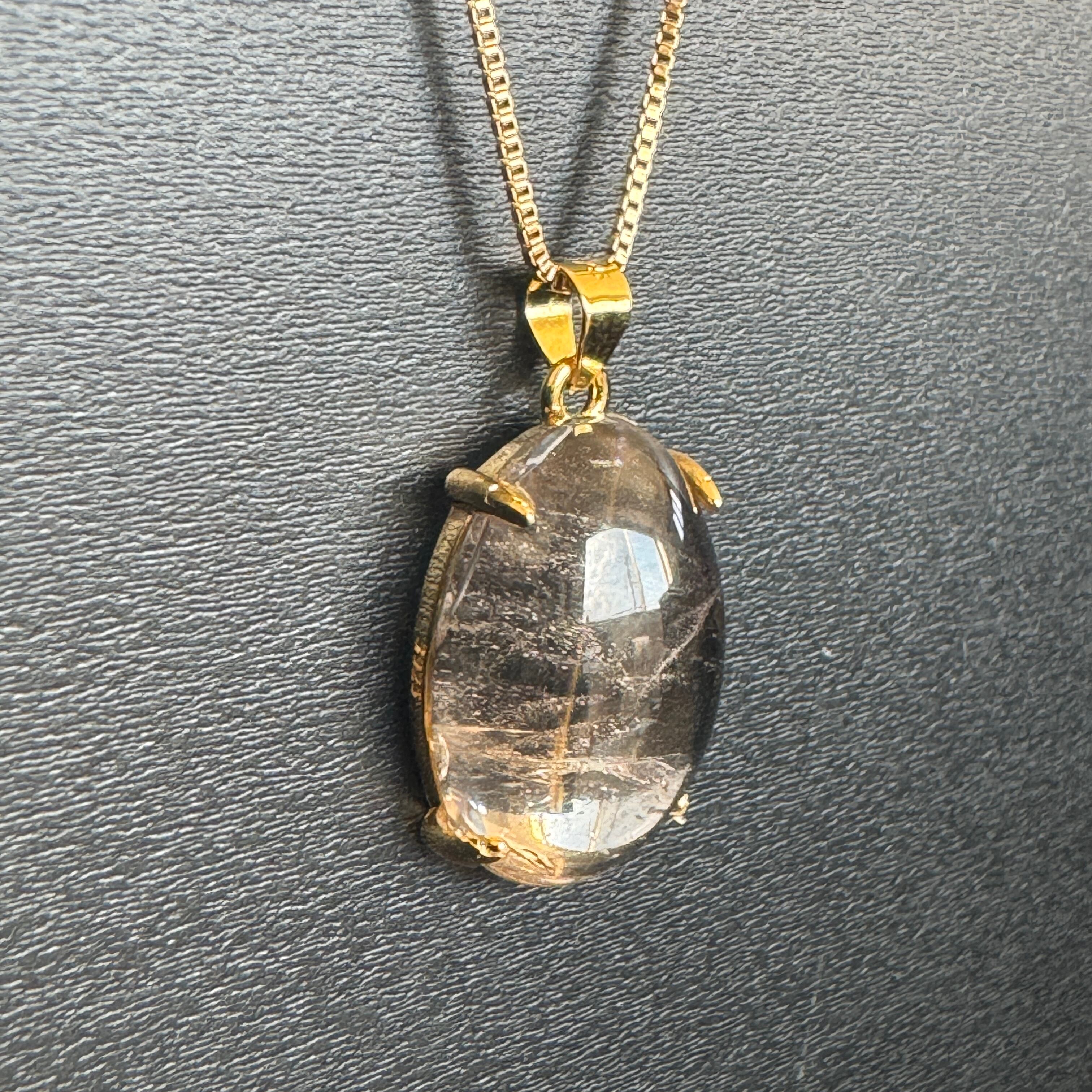 【日本製宝石】【透明】宮崎県高千穂産 高千穂天照水晶ネックレス◆カボションカット◆石サイズ縦18mm◆K14GFネックレス45cm
