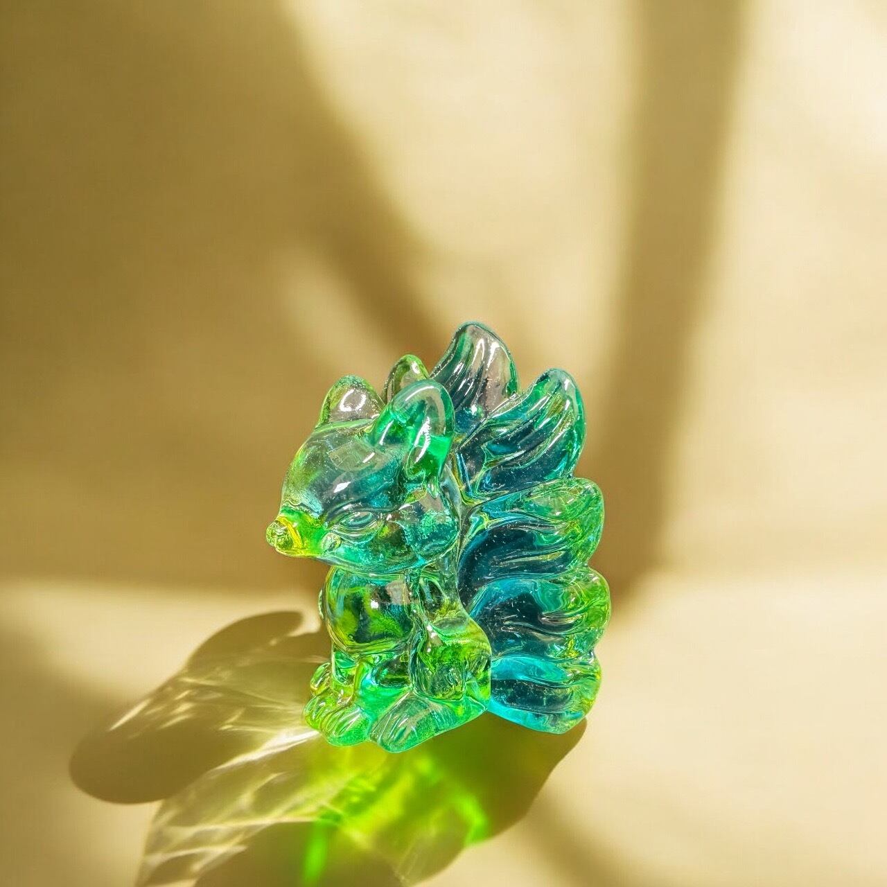 【九尾の狐】瑠璃硝子縁起物◆金運上昇、商売繁盛◆5.8×5.5×4.5(cm)◆2色グラデーション